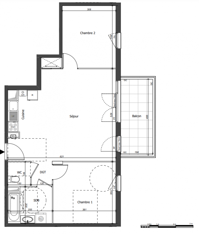 271 500€ Appt. T3 60.51m2 0-RDC