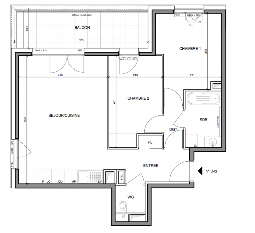 486 000€ Appt. T3 60.1m2 6ème