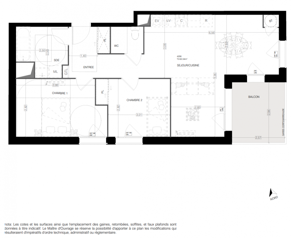 226 999€ Appt. T3 60m2 2ème