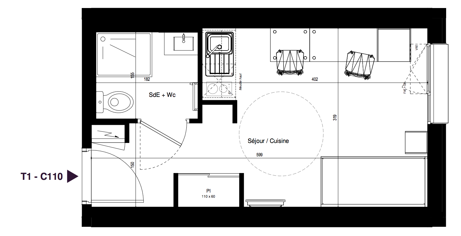 114 247€ Appt. Studio 17.91m2 1er