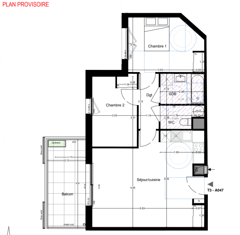 207 083€ Appt. T3 66.82m2 5ème