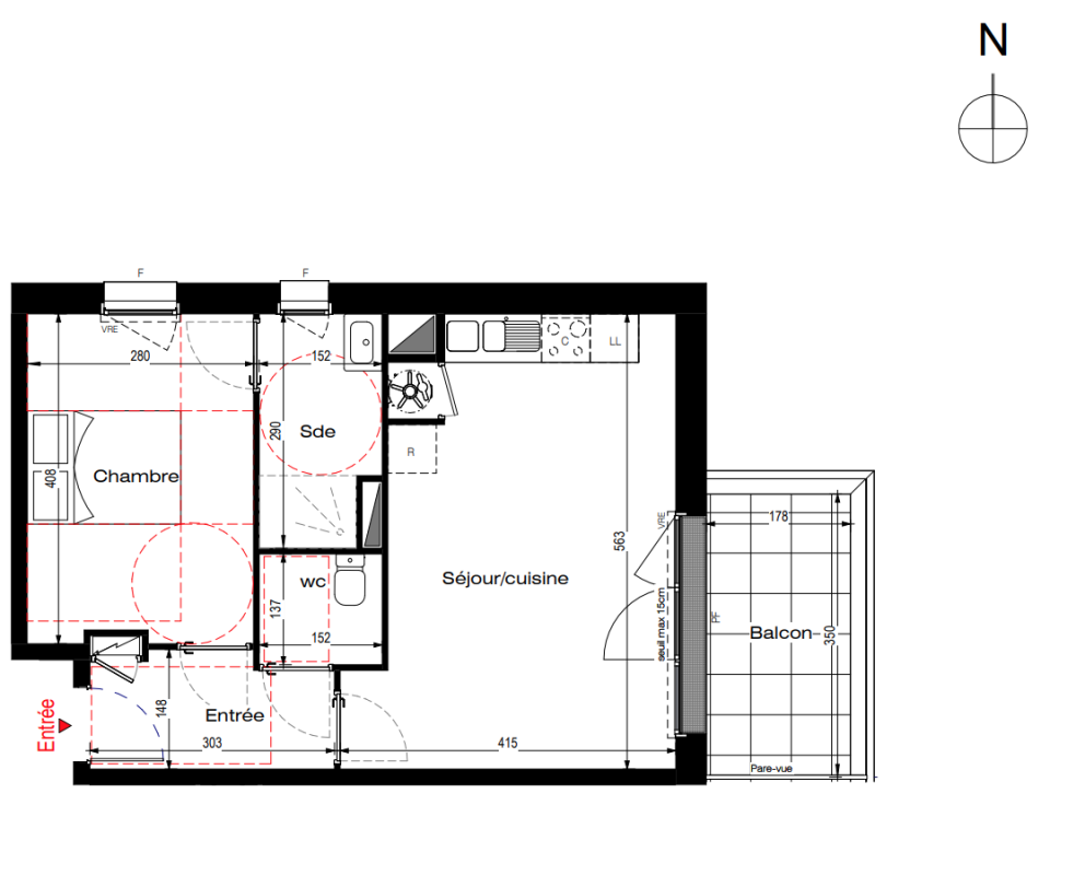 172 000€ Appt. T2 44.43m2 1er