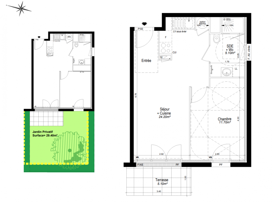 166 066€ Appt. T2 45m2 0-RDC