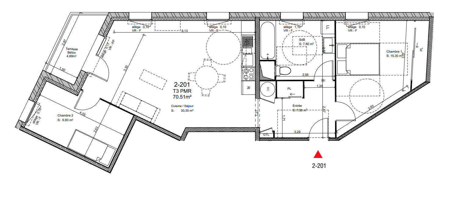 | Voir | Disponible | 169 800€ | 2103 | Appt. | T3 | 69.7m2 | 1er | Disponible | 169 800€ | Voir |