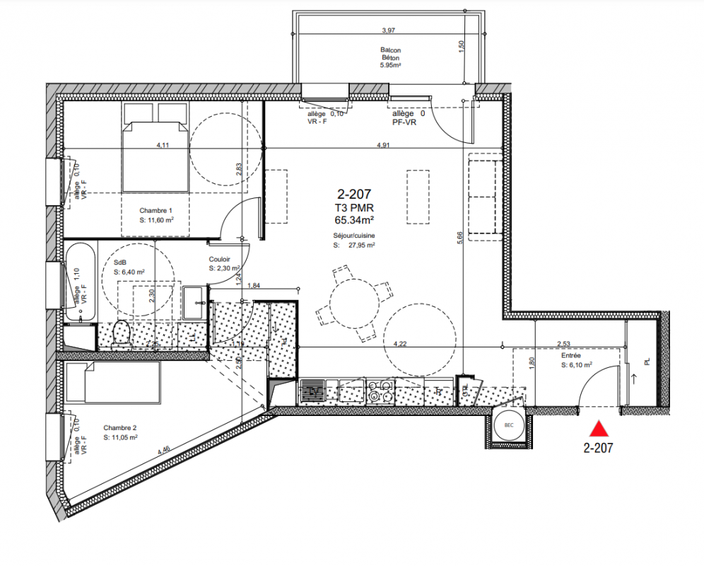 169 400€ Appt. T3 65.03m2 2ème