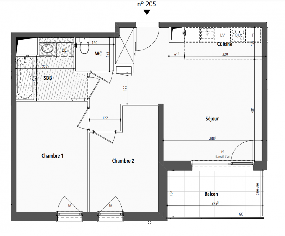 332 600€ Appt. T3 68.85m2 1er