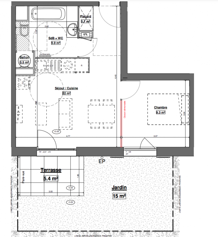 165 700€ Appt. T2 39.3m2 0-RDC
