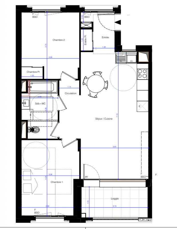 *Pour les logements du bâtiment T1 : brise-soleil à lames orientables.