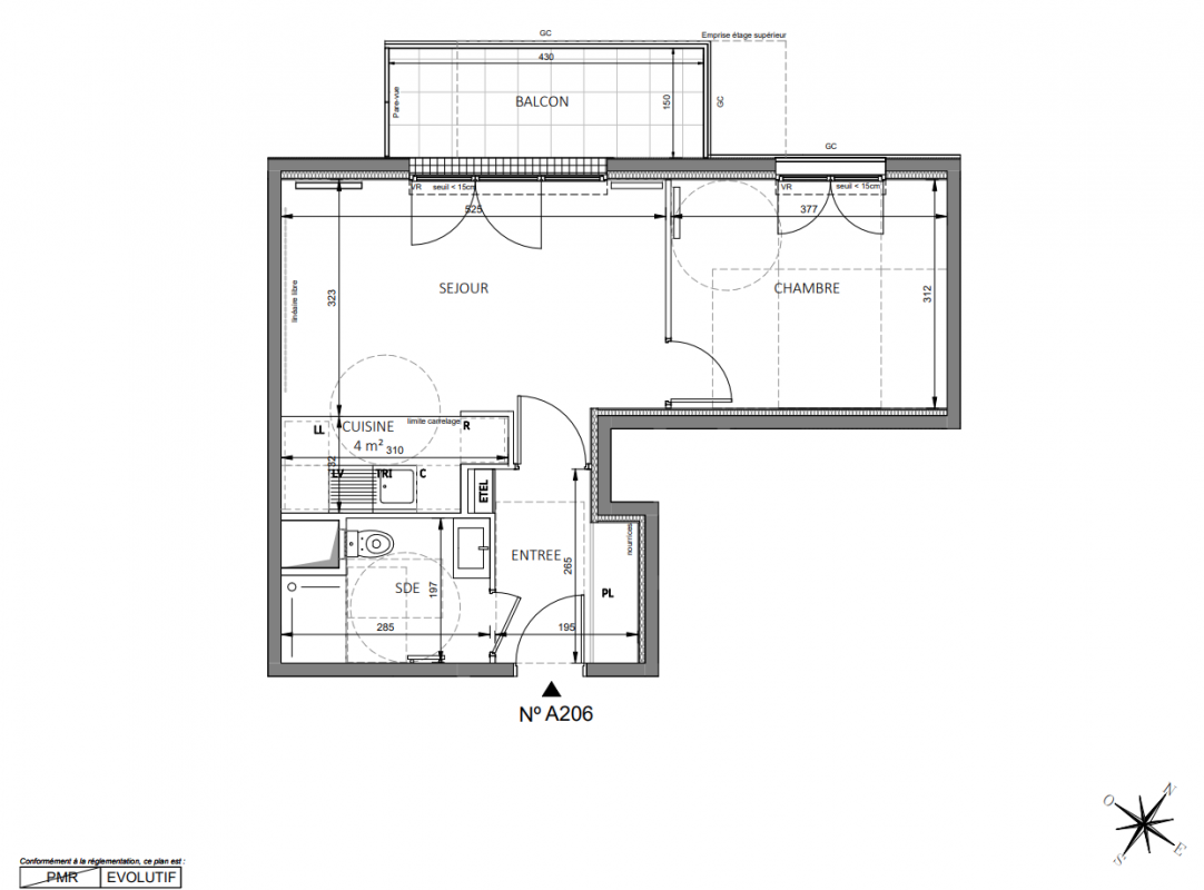 286 500€ Appt. T2 44.08m2 1er