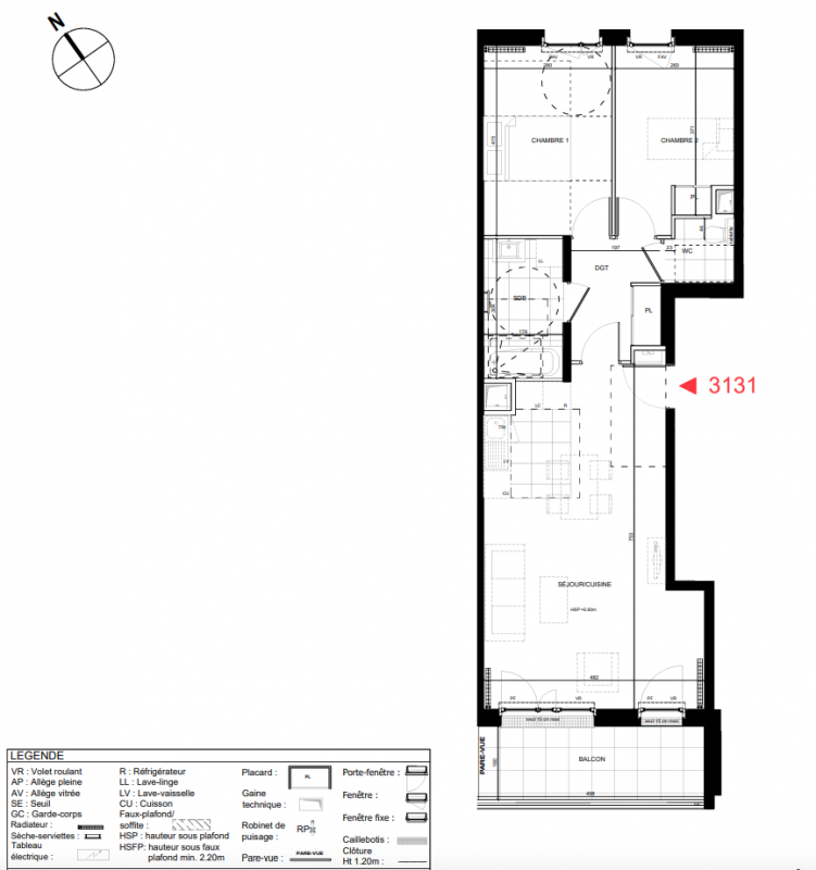 436 999€ Appt. T3 64m2 5ème