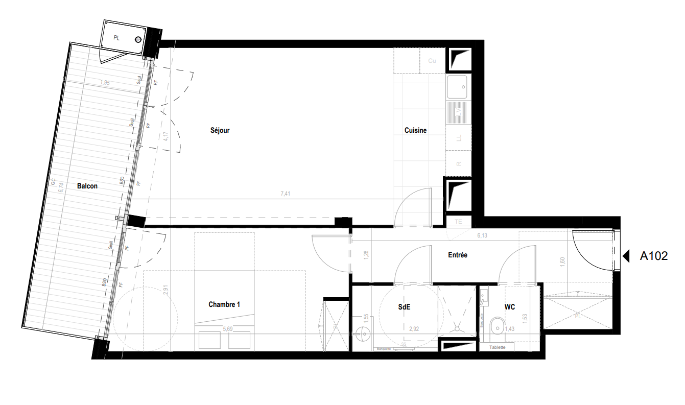 592 200€ Appt. T2 49.5m2 1er