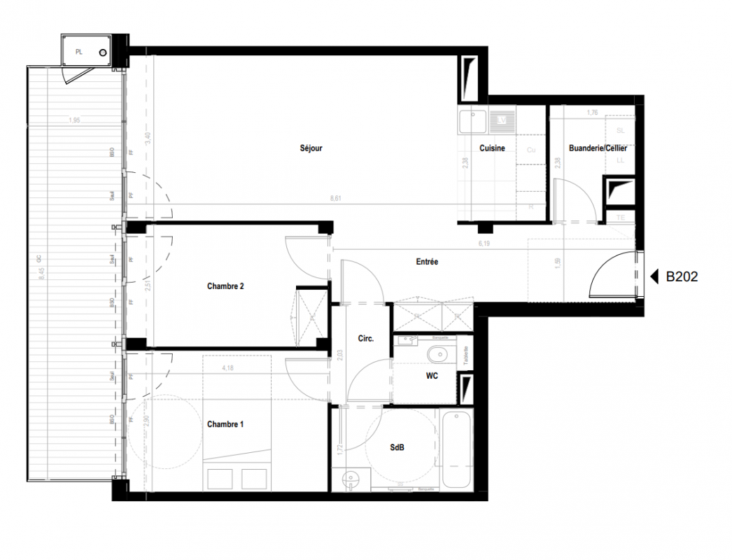 866 680€ Appt. T3 76.4m2 2ème