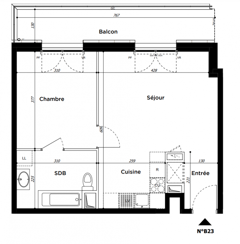 312 400€ Appt. T2 45.05m2 0-RDC