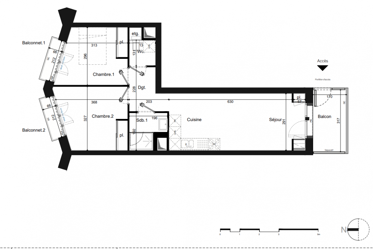 457 000€ Appt. T3 49.2m2 5ème