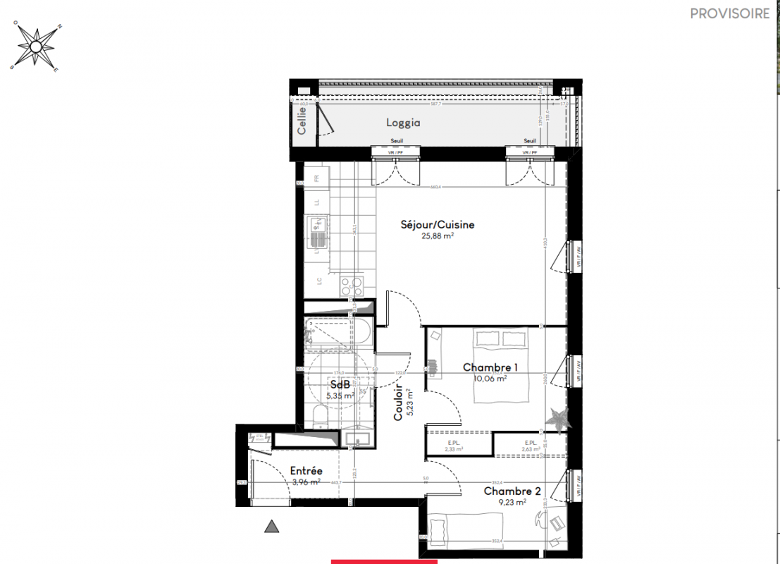 309 900€ Appt. T3 59.71m2 2ème