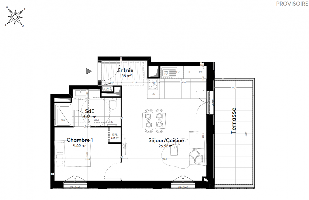 264 900€ Appt. T2 50.6m2 0-RDC