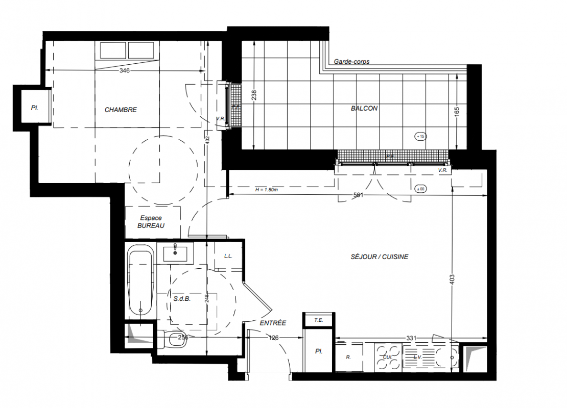 224 000€ Appt. T2 43.3m2 0-RDC