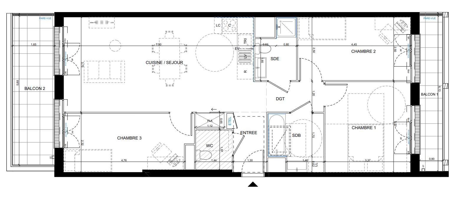 388 891€ Appt. T4 88.25m2 6ème