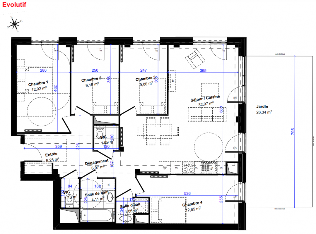 Logements lumineux, double orientation, coeur d'îlot végétalisé et grands espaces extérieurs privatifs et vues dégagées.