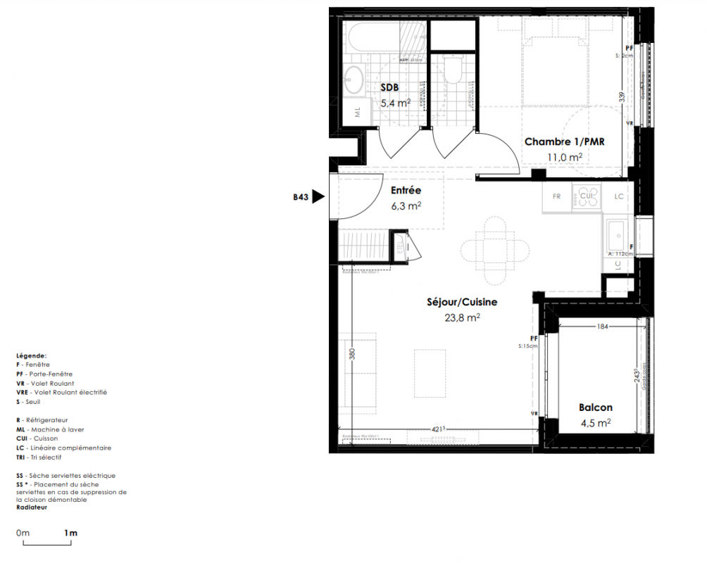 291 000€ Appt. T2 44.5m2 0-RDC