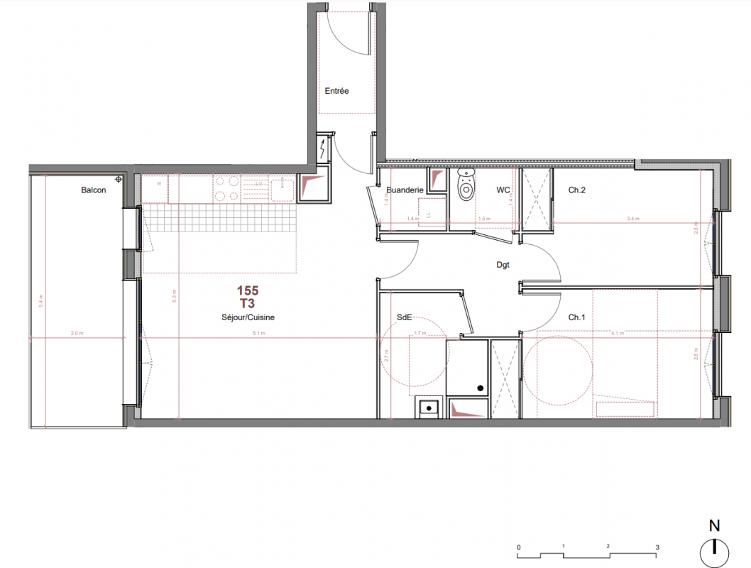 263 522€ Appt. T3 64.4m2