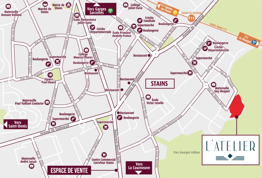 "L'Atelier" est un programme neuf localisé dans la ville de Stains (Seine-Saint-Denis). Les logements sont de type “Appt.” répartis en T2, T3, T4. Il y a actuellement 94 logements disponibles et la livraison est prévue au 2ème trimestre 2028. Le programme immobilier neuf "L'Atelier" est éligible aux dispositifs fiscaux suivants : Accession.