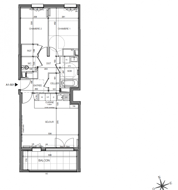 382 180€ Appt. T3 64.65m2 6ème