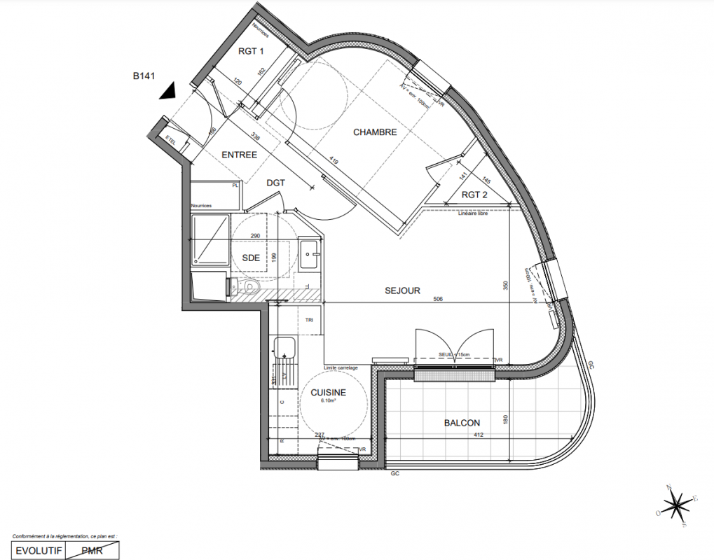 343 405€ Appt. T2 45.91m2 3ème