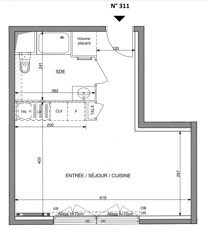245 000€ Appt. Studio 28.57m2 1er