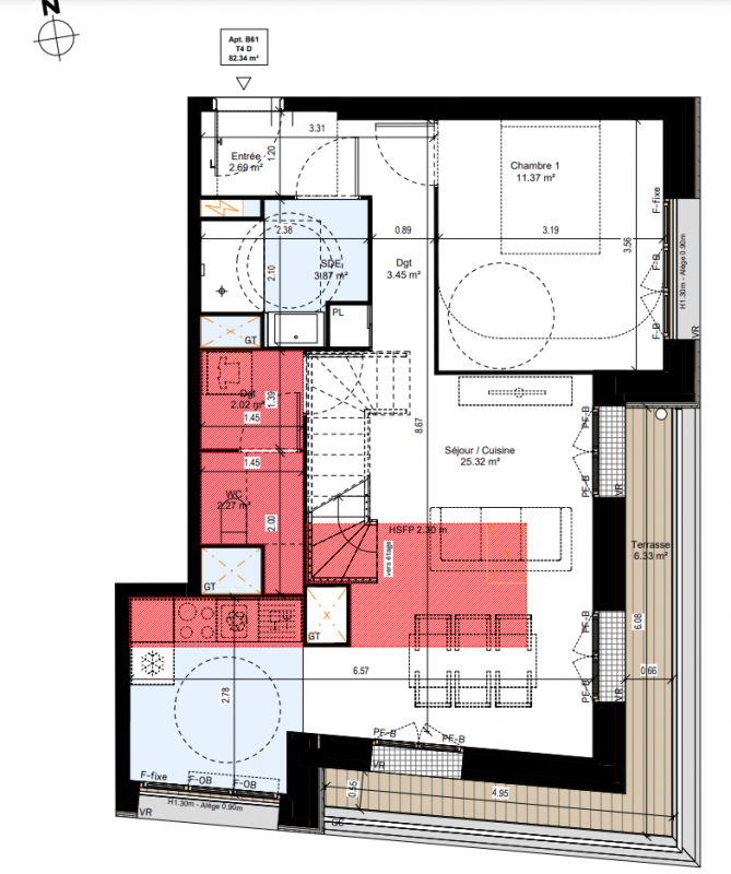384 455€ Appt. T4 77.69m2 5ème