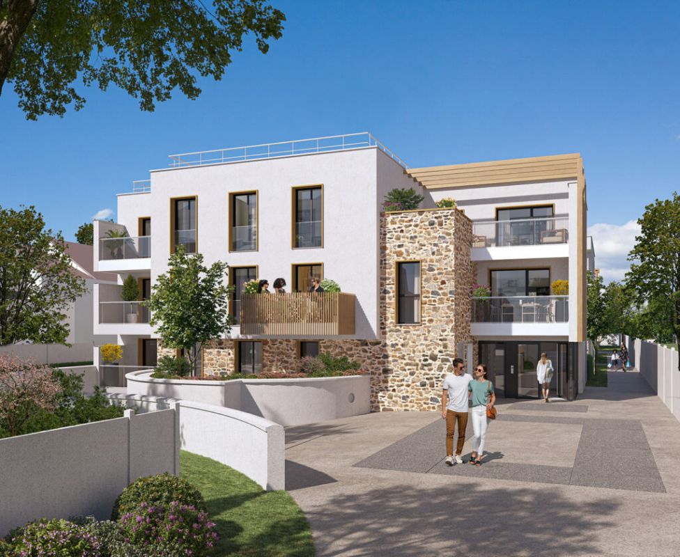 Description: Résidence comprenant des logements spacieux et modernes, dotés d’espaces extérieurs privatifs ; Conçue avec des matériaux naturels, dont la pierre de taille emblématique du Grou...