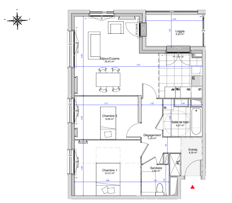 349 000€ Appt. T3 63.61m2 4ème