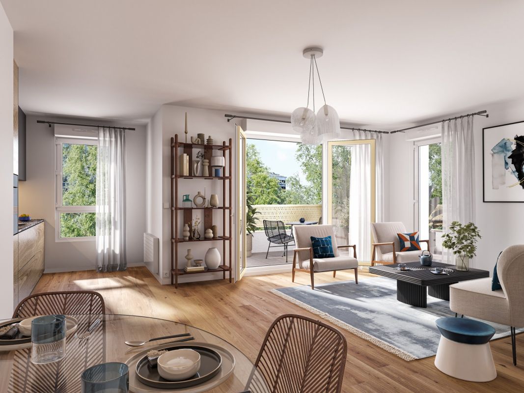 Cette réalisation signée EMERIGE s’inscrit dans un quartier en pleine transformation, bénéficiant de toutes les commodités et d’un réseau de transports efficace.L’environnement, idéal pour les familles, se caractérise par des équipements modernes, une forêt urbaine et de nombreux espaces verts de proximité.L’architecture élégante de la résidence et la décoration soignée des halls et paliers reflètent une recherche de confort et de bien-être. Raccordée au réseau de chauffage urbain, elle combine économie d’énergie et respect de l’environnement.La résidence propose une large gamme d’appartements neufs, du studio au 5 pièces, avec des prestations de qualité. La plupart des logements disposent d’un espace extérieur, comme un balcon ou une terrasse, tandis que certains offrent une double ou triple exposition avec des vues dégagées. Un grand local à vélos et des places de parking sont prévus pour les appartements à partir du 2 pièces.