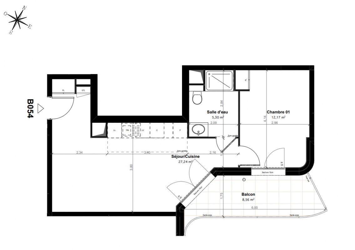 334 600€ Appt. T2 42.12m2 2ème
