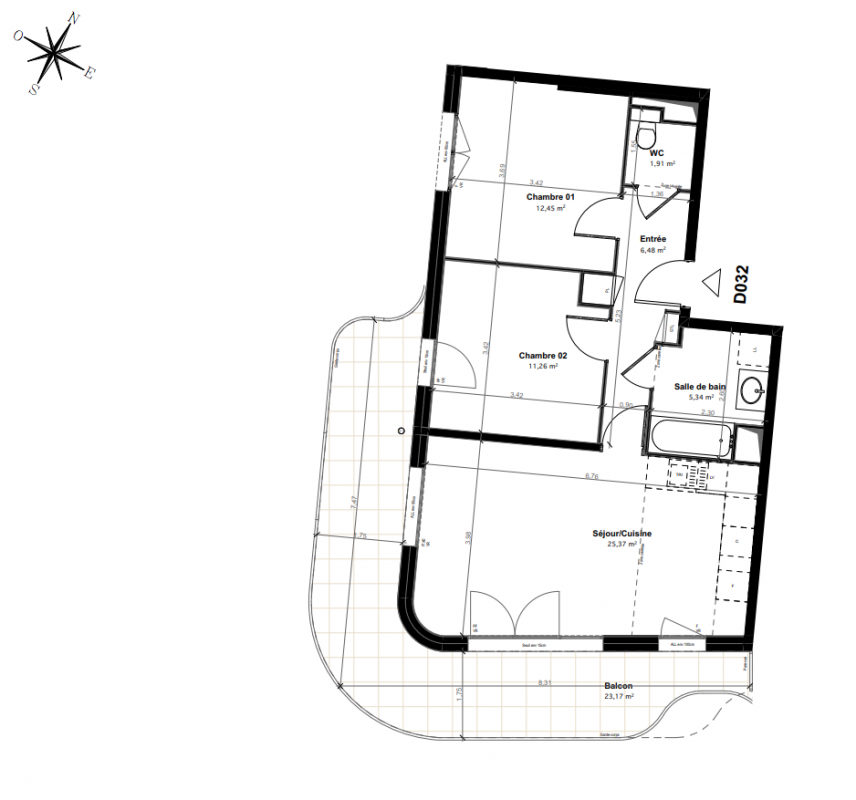 406 000€ Appt. T3 66.35m2