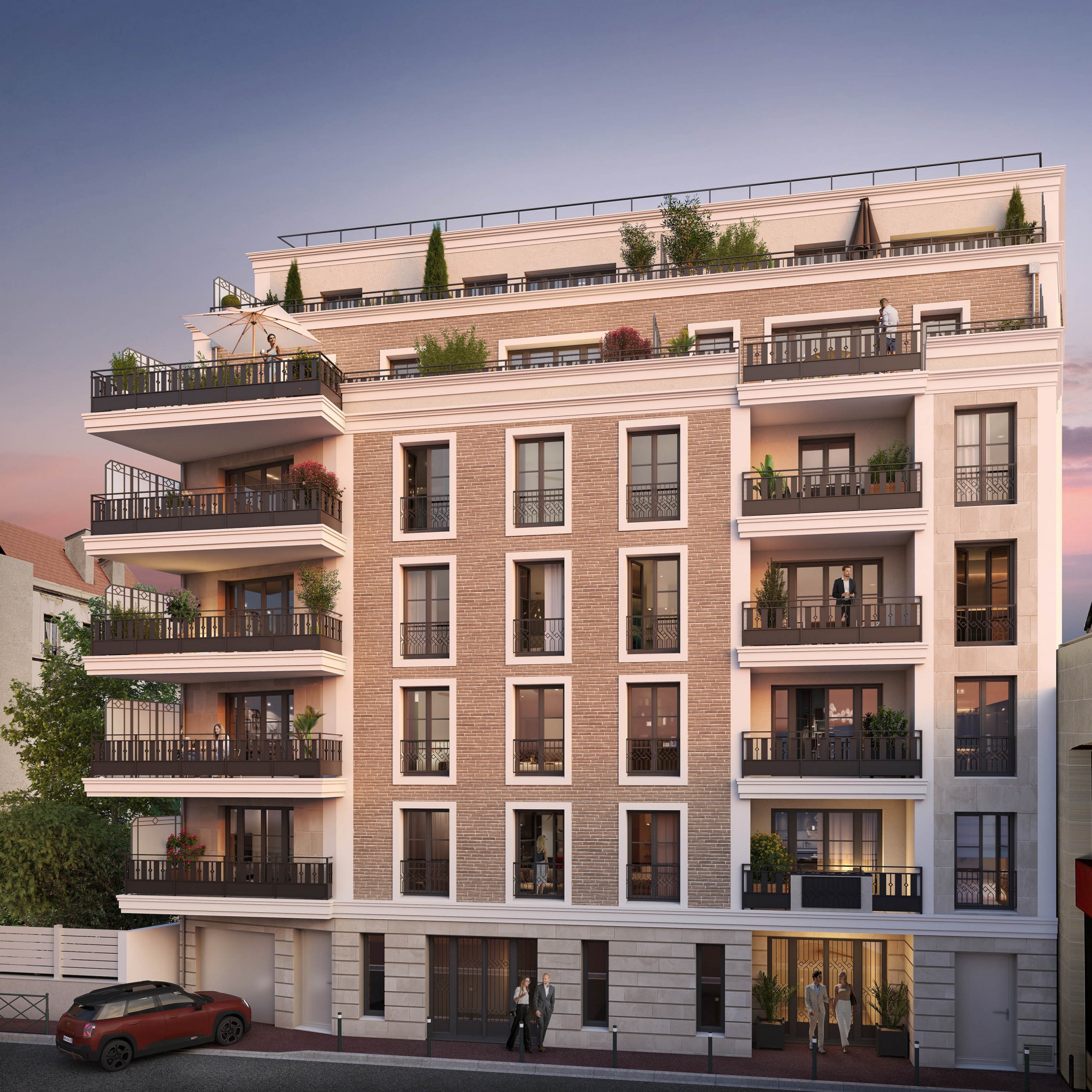 La majorité des logements bénéficient d’une double orientation, garantissant une excellente luminosité. Ils sont tous prolongés d’un espace extérieur, que ce soit un balcon, ou encore une grande terrasse en attique, ce qui constitue un véritable luxe, particulièrement en région parisienne.
