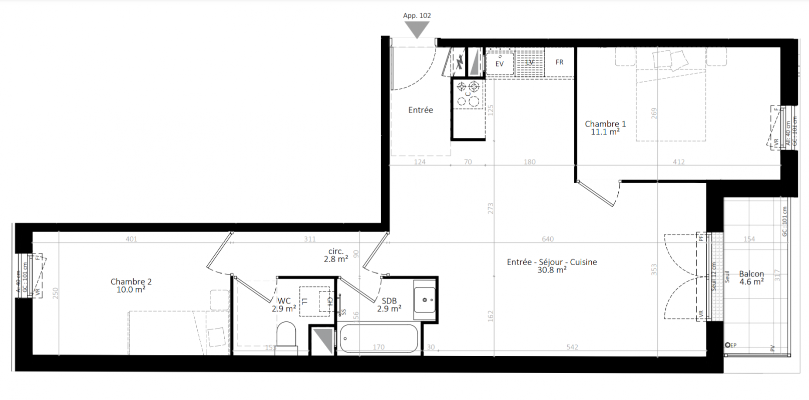 277 422€ Appt. - 57.4m2 2ème
