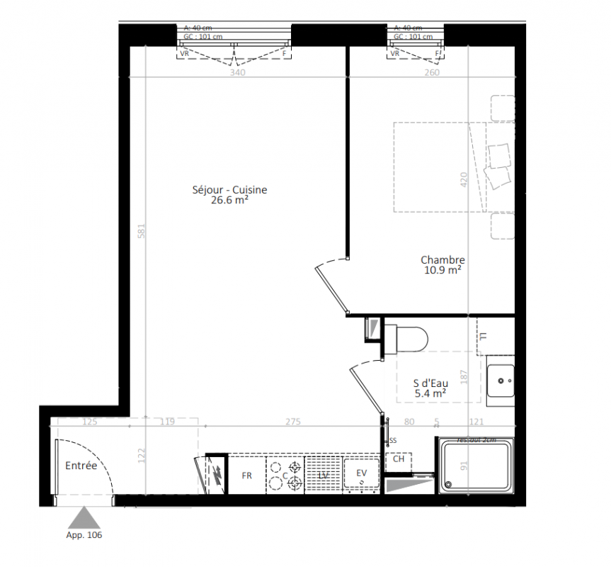 225 100€ Appt. - 43m2 2ème
