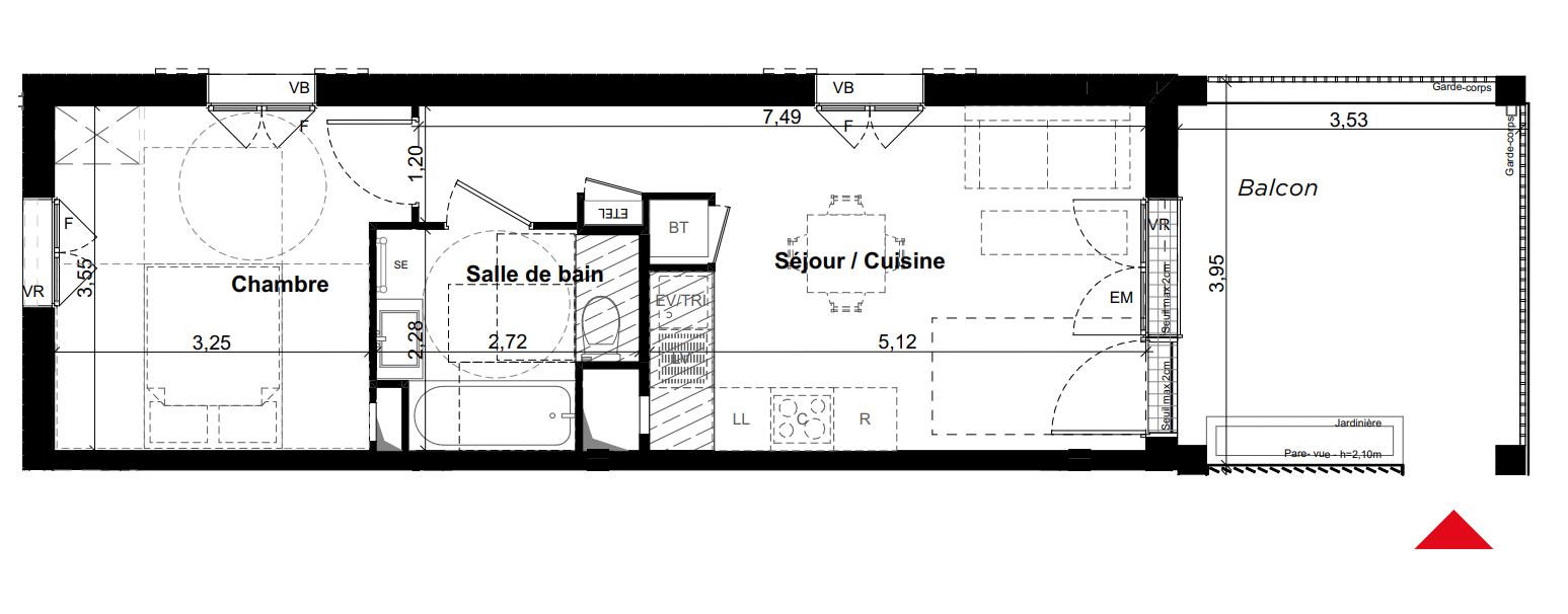 184 900€ Appt. T2 38.09m2 0-RDC