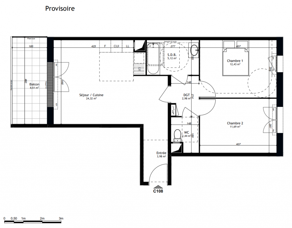 198 900€ Appt. - 49.57m2 3ème