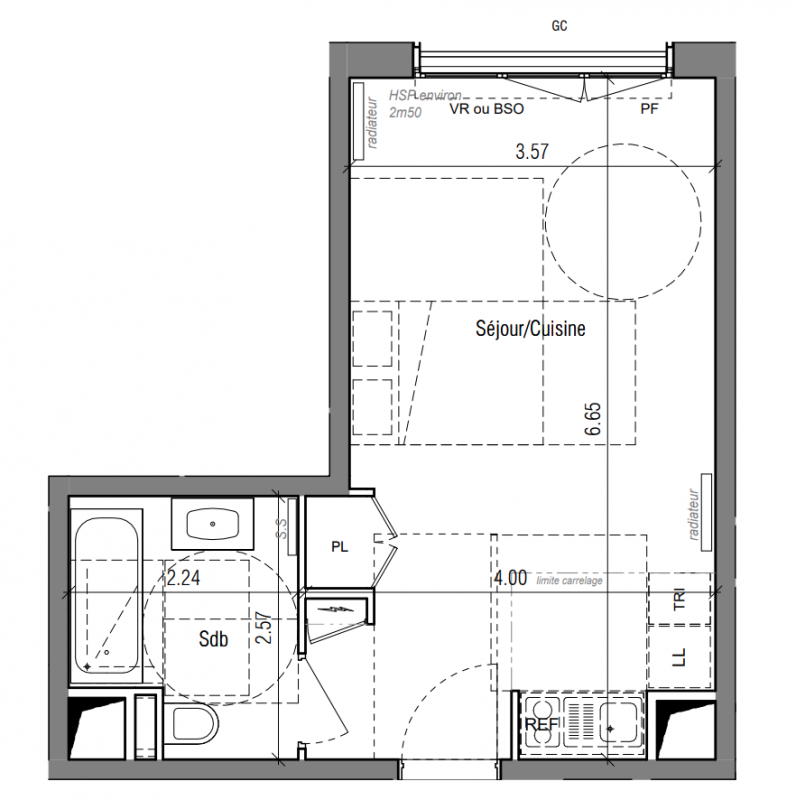 300 000€ Appt. Studio 27.61m2 1er