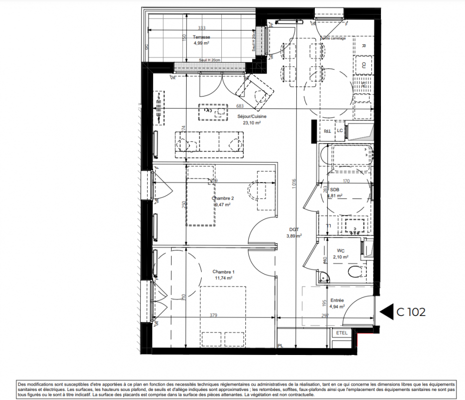 | Voir | Disponible | 387 000€ | C103 | Appt. | T3 | 62.8m2 | 1er | Disponible | 387 000€ | Voir |