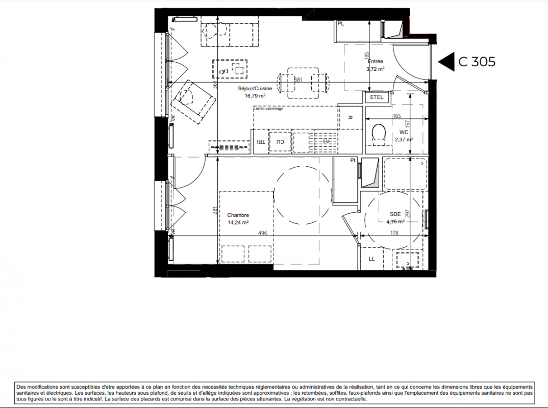 339 000€ Appt. T2 47.11m2 0-RDC
