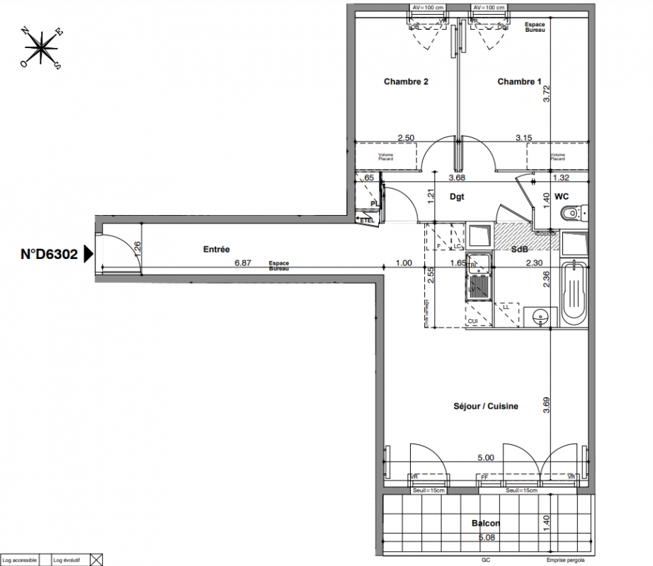 373 000€ Appt. T3 66.6m2 0-RDC