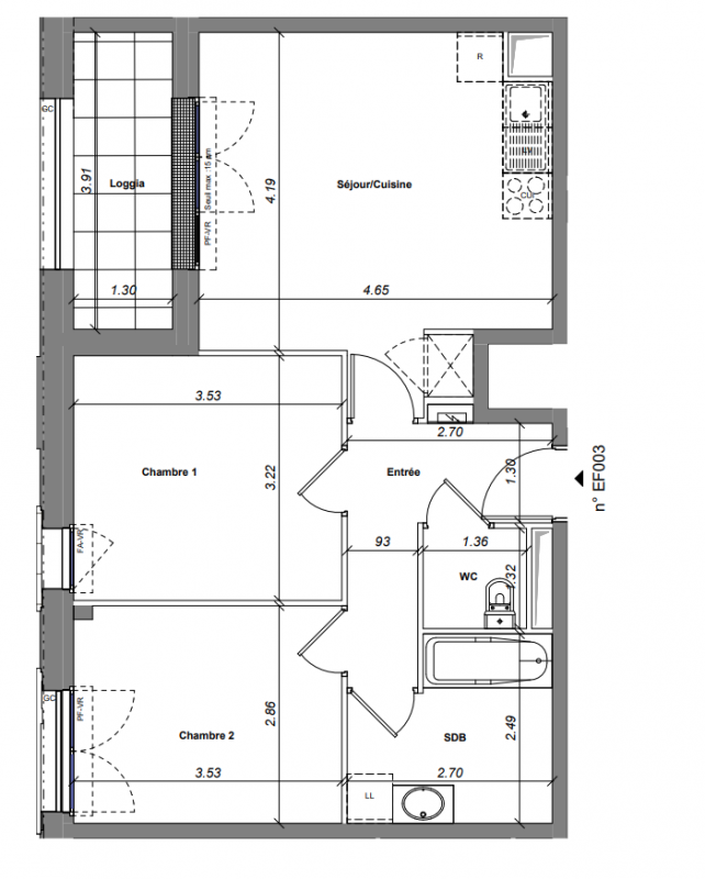 352 100€ Appt. T3 65.89m2 1er
