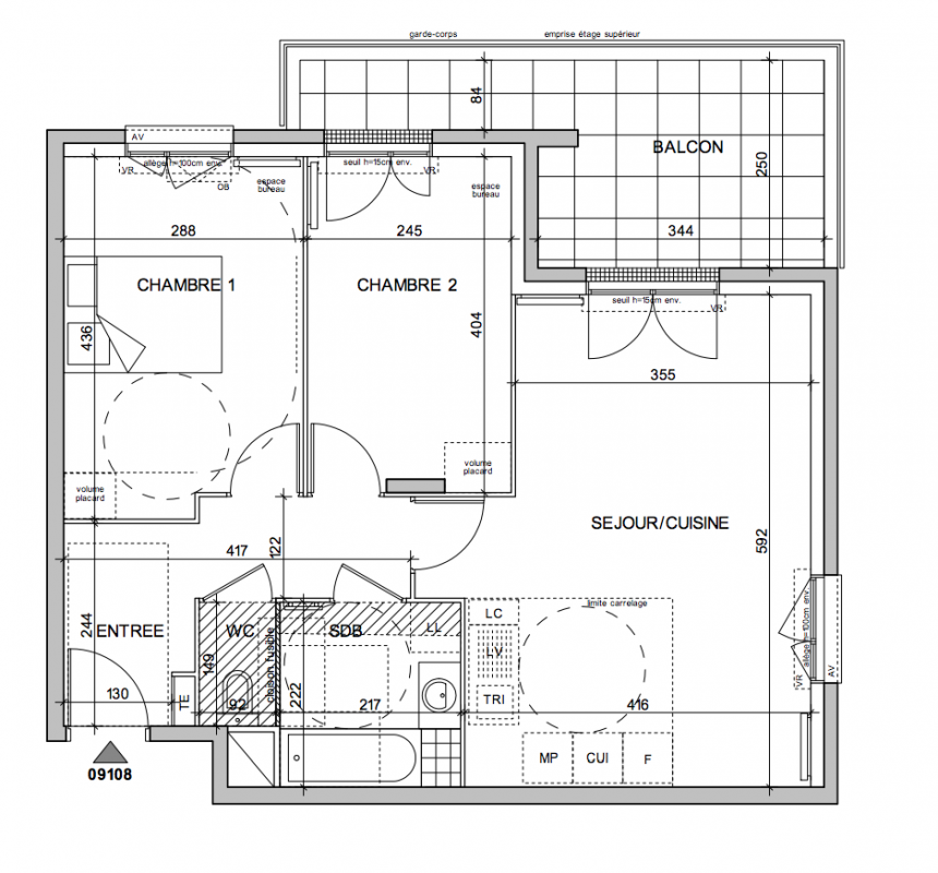 307 000€ Appt. T3 59.66m2 0-RDC