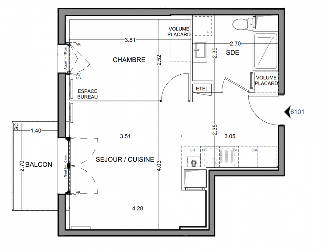 176 303€ Appt. T2 46.56m2 2ème