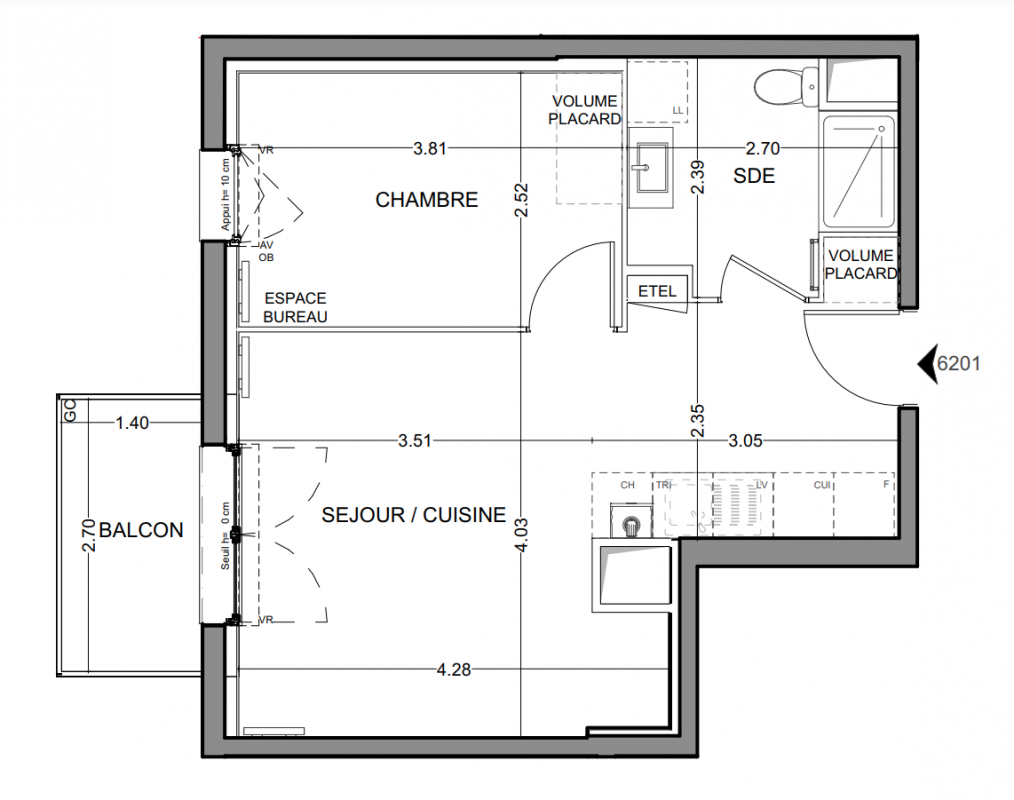 176 303€ Appt. T2 46.56m2 2ème