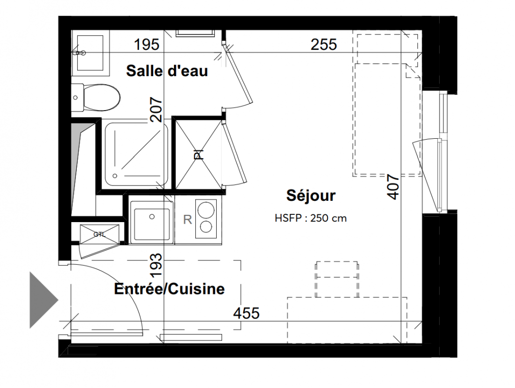 143 520€ Appt. Studio 14.13m2 3ème