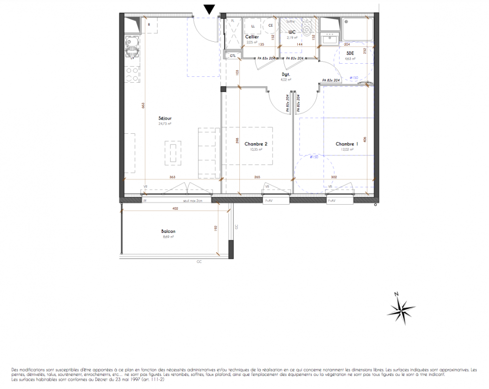 224 800€ Appt. T3 62m2 2ème